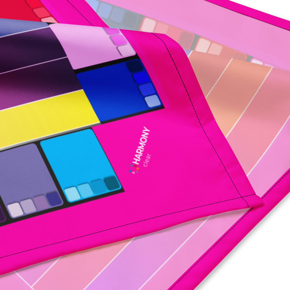 Our bandana-style color swatches are a wearable and practical alternative to bulky swatch books. Designed for clients and coaches alike, each piece features a curated palette from the Clear Spectrum with clearly marked neutrals, accent colors, and core hues.