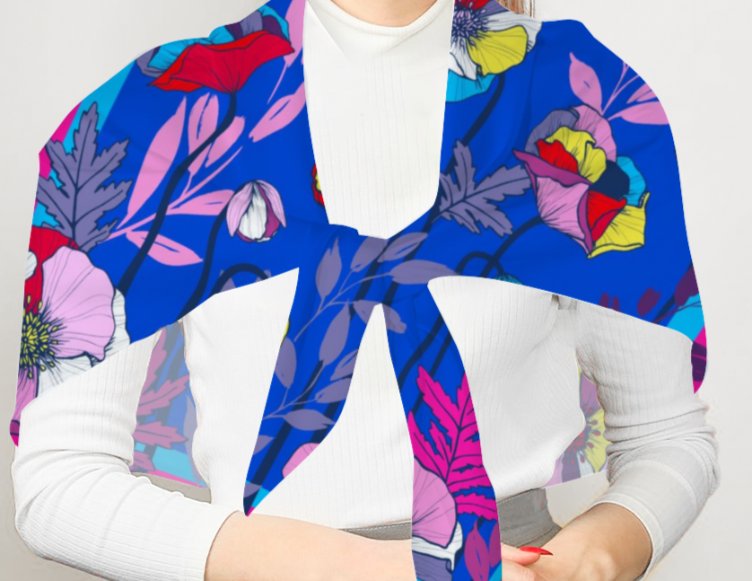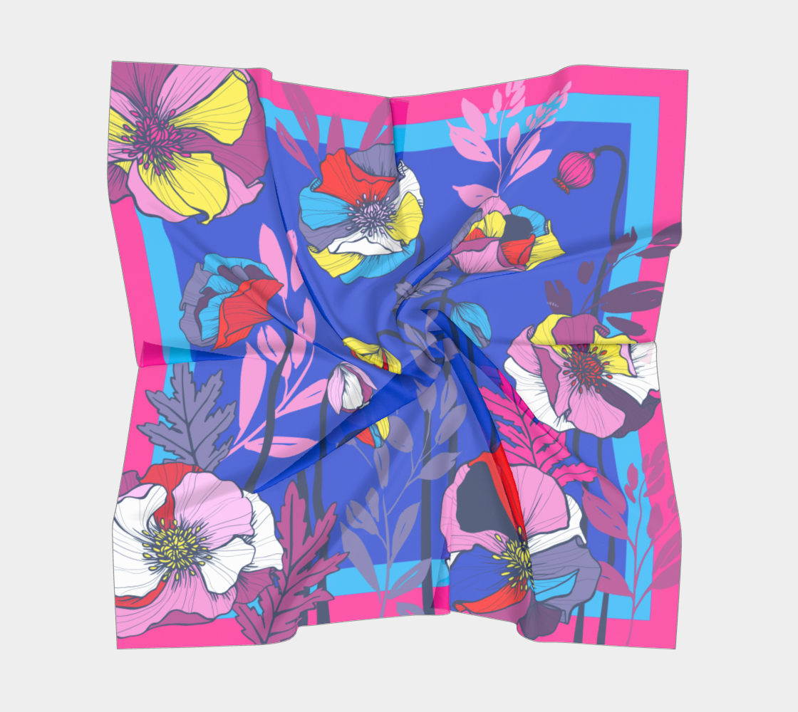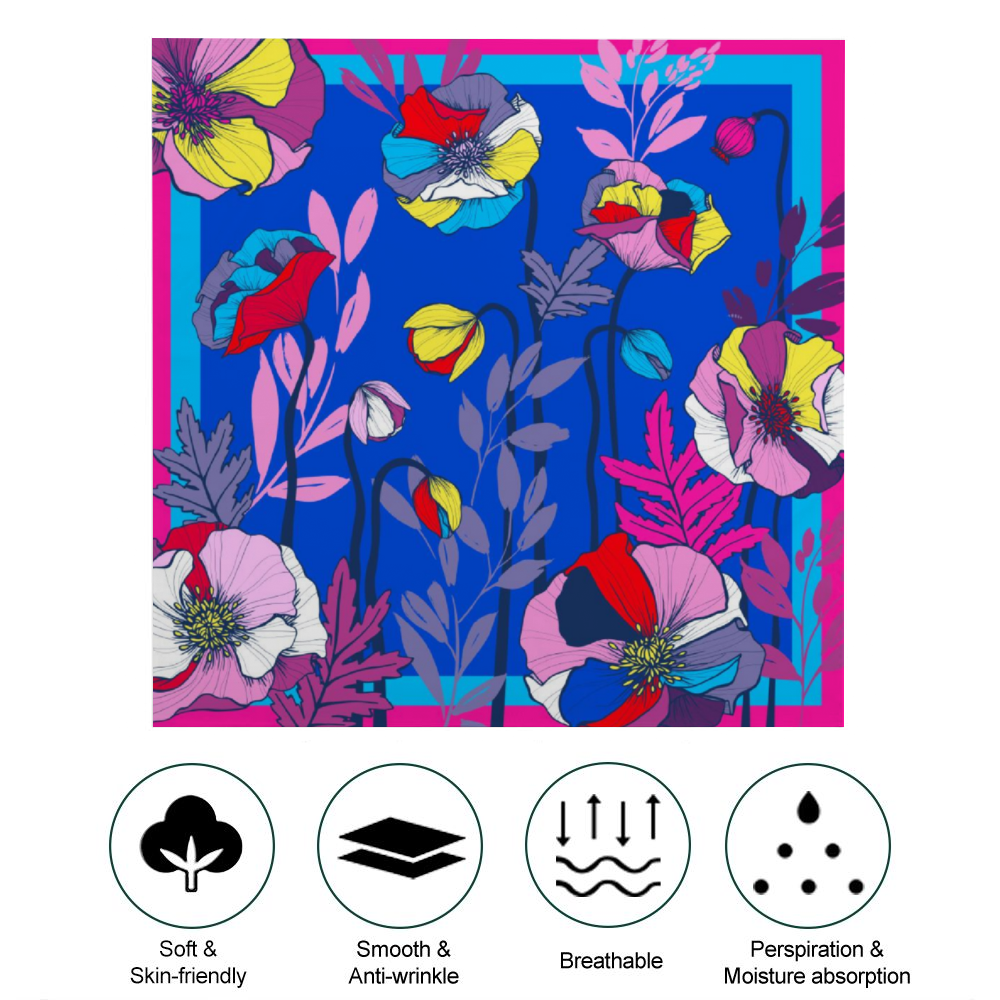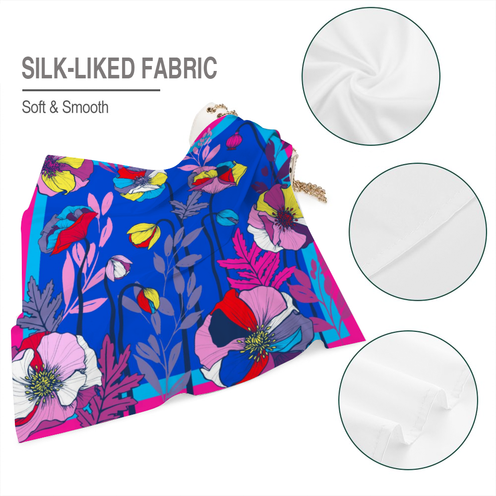 Make a statement with Clear Poppies — a large square scarf printed with a lively poppy motif in crisp, high-contrast tones. The supreme poly-satin has a glossy, silk-like drape and feels luxuriously smooth against the skin. Single-side thermal transfer printing ensures jewel-bright color and crisp detail so the poppy pattern reads beautifully whether you wear it as a neck tie, headscarf, or lightweight shawl. Designed to pop with high-contrast wardrobes and lift your face with clear, vibrant color.
